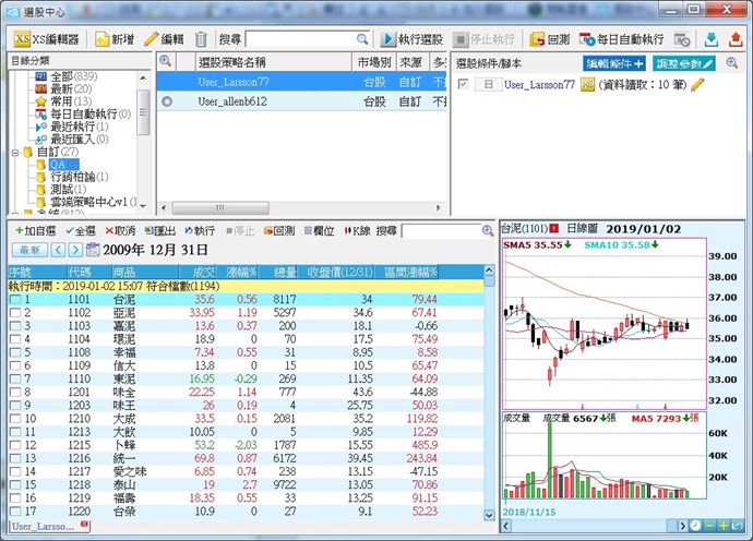 選股中心:新增『回溯』及『回測』功能