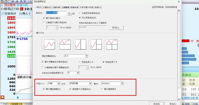 2.在商品盤勢按右鍵→設定,請幫忙截圖提供目前“字型大小”的設定值。