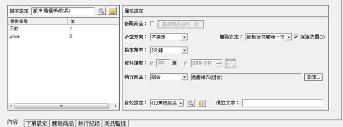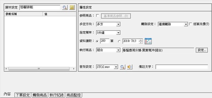 若不方便提供腳本,請您提供該策略雷達,以下兩張完整畫面(策略雷達內容與下單設定,小幫手知道您有提供下單設定部分畫面,