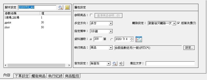 策略雷達 低於成本y點_停損出場 內容屬性設定: