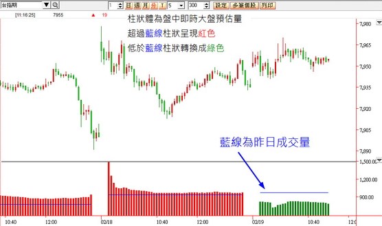 例如這樣,以5分為一個單位 並且將成交量可以盤中畫出,與昨日做對比