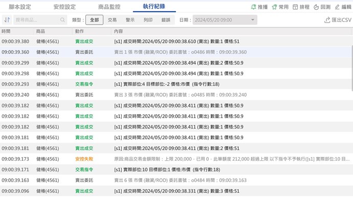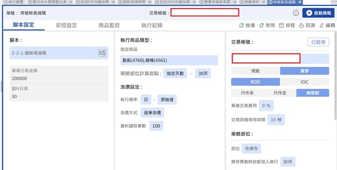 也設定了安控設定,設定交易商品只交易一次,