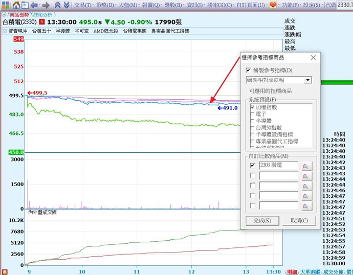 當天走勢 大盤跟個股在同一張圖出現嗎