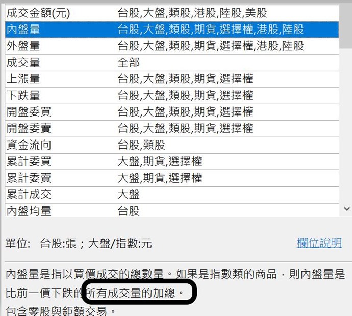 summation(q_TickVolume,20)-->這樣沒辦法分內外盤.