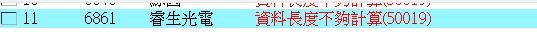 但發現6861這檔股票出現 資料長度不夠計算(50019)錯誤