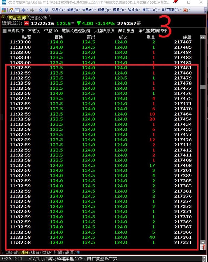 比如:500元的股票(等於五十萬)單筆買了十張,一分鐘買了十次就會通知~~還是500元的股票單筆這秒買了四張,下一秒買了三張