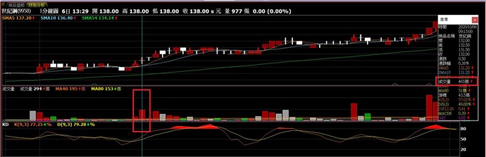 如果之後的某根k棒成交量大於第一根 那就觸發警示