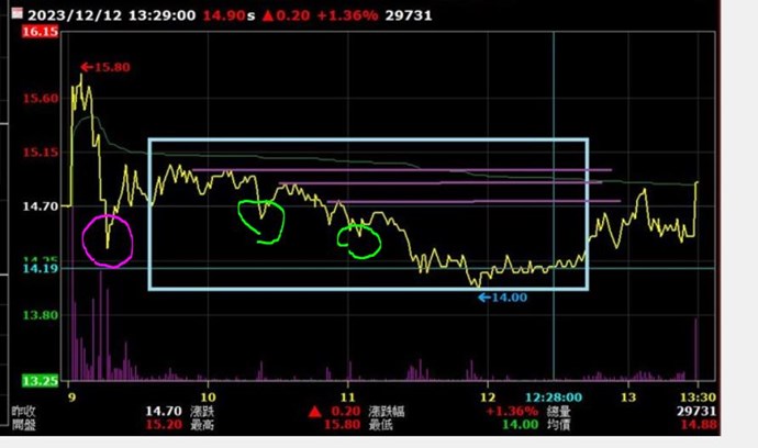 因為目前自己想不出什麼好用的條件來篩選,例如屢創創新低(綠色),但是開盤其實就有更低點(粉色)