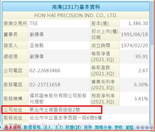 看籌碼時的基本資料只有工廠位置 並沒有看到公司位置