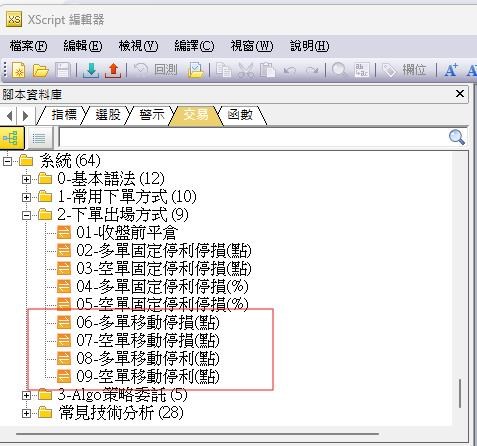 小幫手您好,xscript腳本資料庫內交易分類系統內建的移動停利跟移動停損出場方式是以點數的方式做計算,這對做期指還滿好用的,不知道能不能把用點數計算的方式變更為用%數計算?
