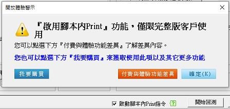 現在勾選腳本內print會跳出要付費的窗口,