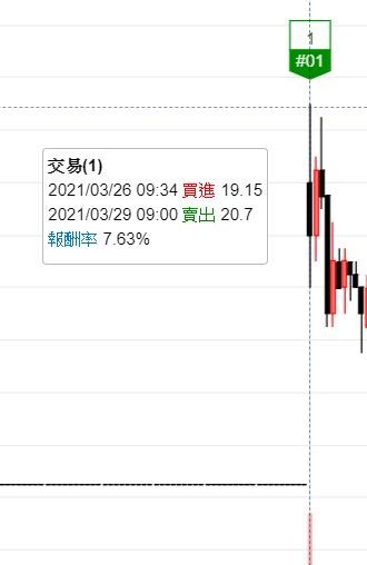 理論上一開盤就要出場! 但回測的結果每一筆都不一致, 有些是開盤價, 有些最高價..找不到規則!