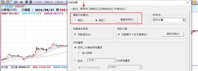 您好,若您的快捷鍵設定為預設鍵盤「類型一」(使用鍵盤的"+"、"─"號可快速切換上一檔、下一檔商品),可以先改為「類型二」(使用 PageUp、PageDown 切換上一檔、下一檔商品)