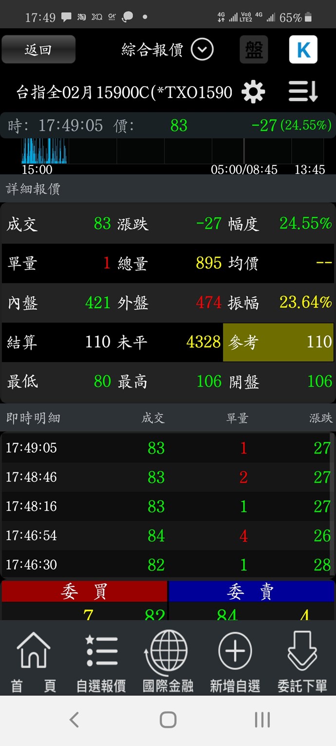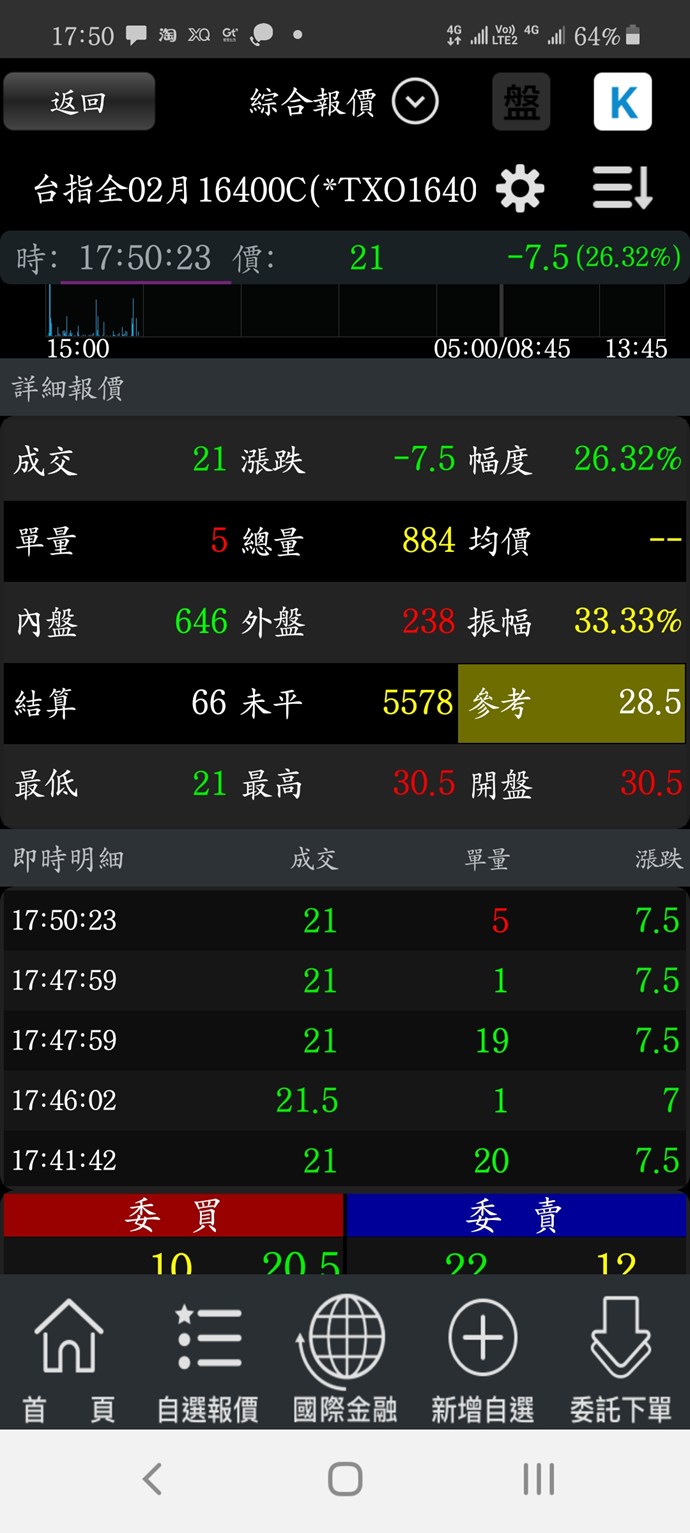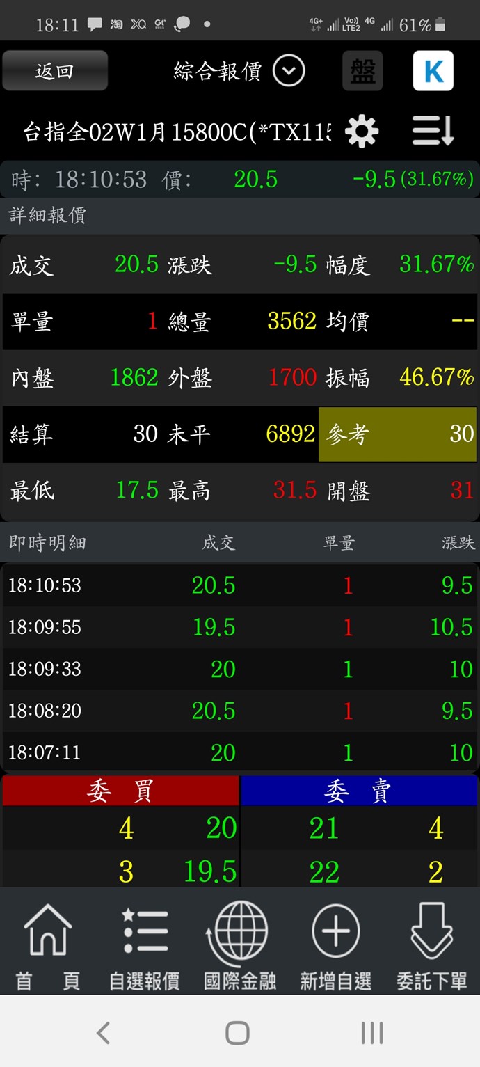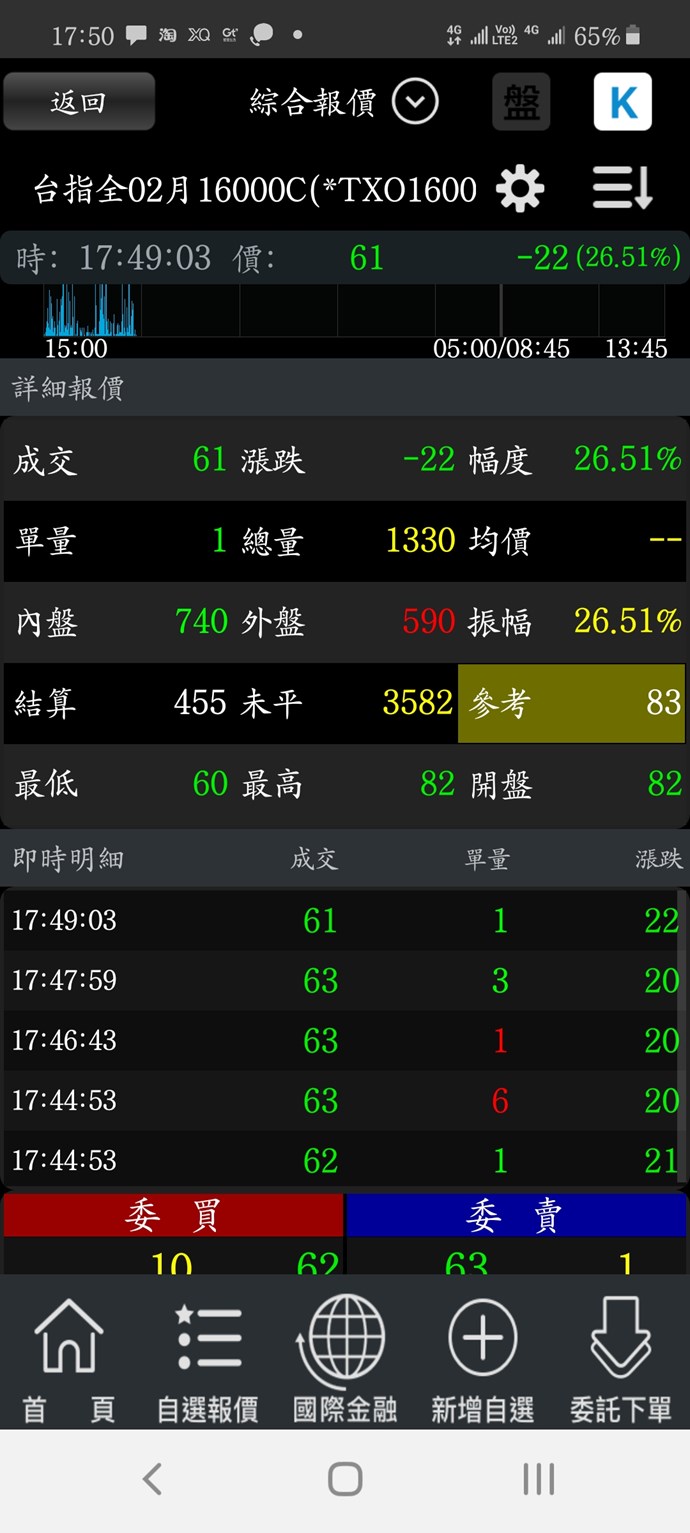 - 親愛的小幫手您好,實驗的當時狀況是c15900至c16200,中間應該有c15900 ,c15950,c16000,c16050,c16100,c16150,c16200, 共7檔合約,他們的價格都在設定的條件內。實驗一個小時的結果是15950,16056,16100這三檔合約一個小時內都沒有觸發,當時觀看價格變動這三檔都有變動,也就是有成交在條件內。但沒觸發。