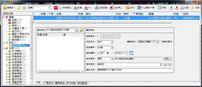 我寫了一個放空策略,警示腳本觸發後就在盤中用策略雷達自動下單