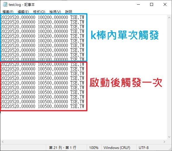 不過逐筆洗價的執行似乎不會記錄c0的改變,導致在同一個週期的k棒仍然重複print