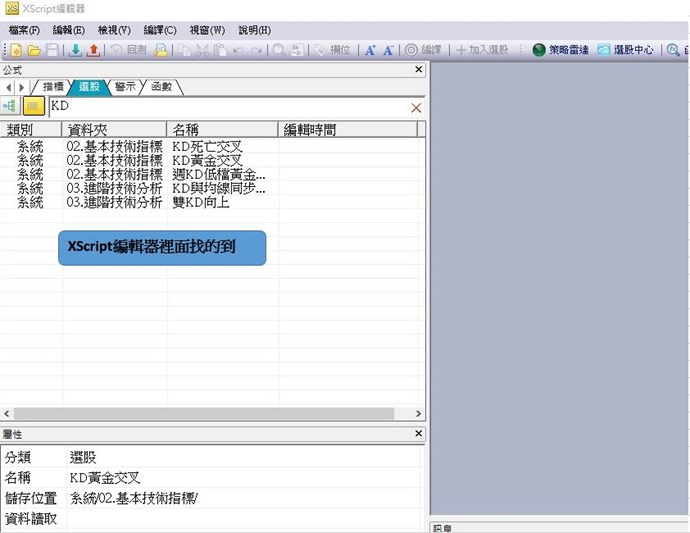 在XScript編輯器找得到,但進入策略雷達內就看不到