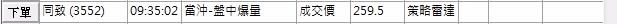 到9:35分都漲到267元了,和觸發價259差了很多,對錙銖必較、分秒必爭的當沖單來說真是一大損失...