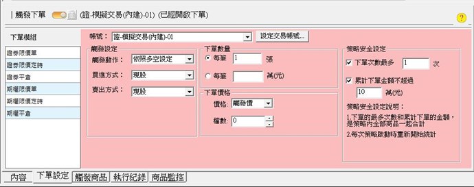 ...對我上班人員很不方便,我於前一晚將監控排程與觸發下單開啟設定好後(確認排程表呈現粉紅色在runing),就希望交給系統去監控.不想早上起來還要再去煩惱一次,又要再開電腦確認一次?