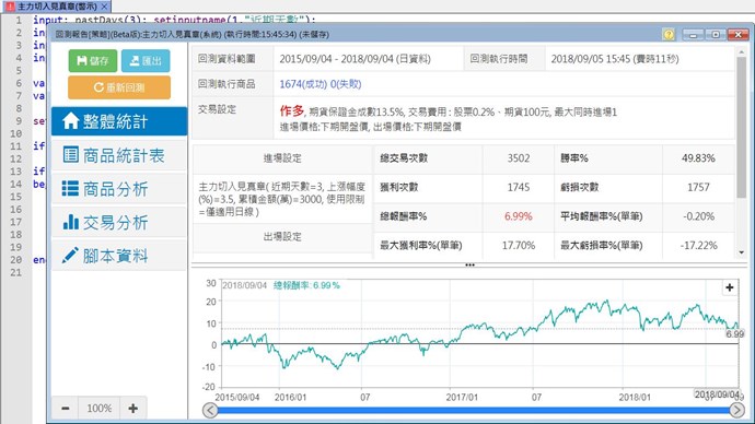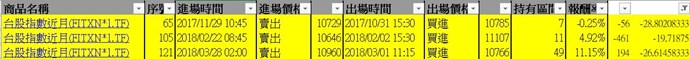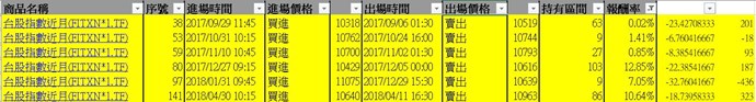 以下是執行2015/9/11~2018/9/11測試,跑出來有異的交易