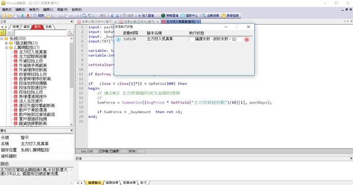 編譯都是沒有錯的,但跑回測卻跑不出結果(用系統內建的警示腳本也發生一樣狀況)