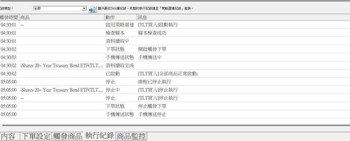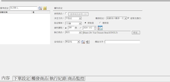 小幫手您好 以下是我策略雷達的觸發設定腳本及設定狀態 ,用最簡單的觸發條件想要在尾盤買入美股ETF