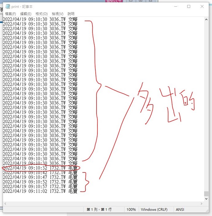 另外,您once這樣包的話print和警示都只會執行一次。