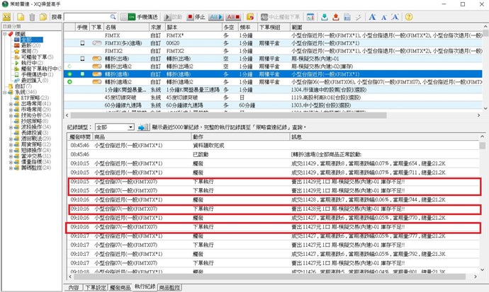 使用策略雷達的模擬帳號做買進,卻會有"庫存不足"的訊號