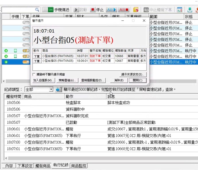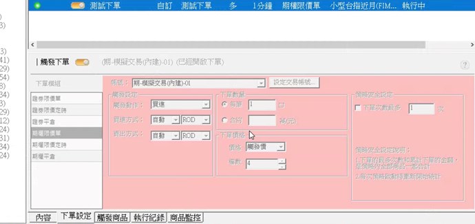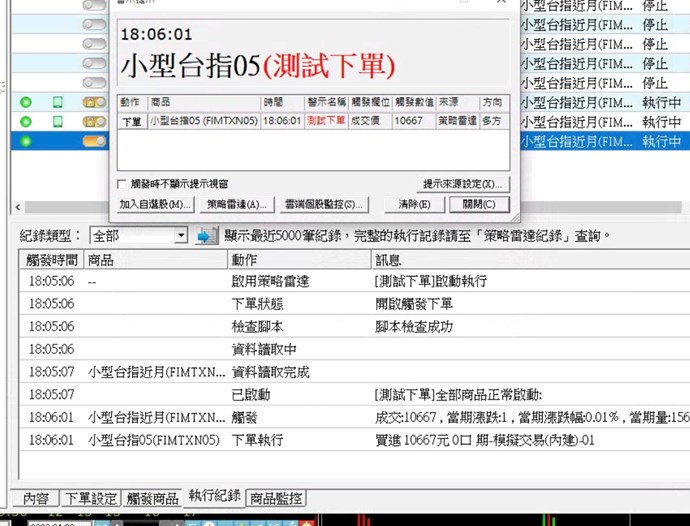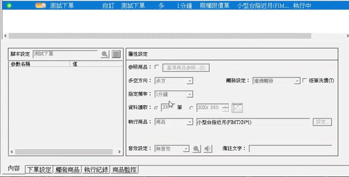 問題1.策略用基準商品參照為大台,然後觸發下單用小台,觸發腳本單純寫volume[1]>0。用富邦帳號觸發平倉訊號時也出現庫存不足,若不使用基準商品參照並使用模擬帳號就正常