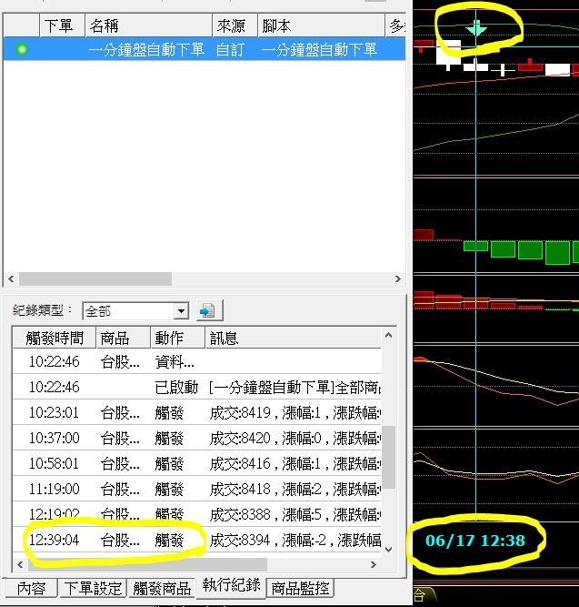 原因是,為了追求時效,我們把洗價模式設定成逐筆洗價,表示當有價格成交時就馬上執行腳本,而不是等到1分鐘K棒結束時才執行腳本。