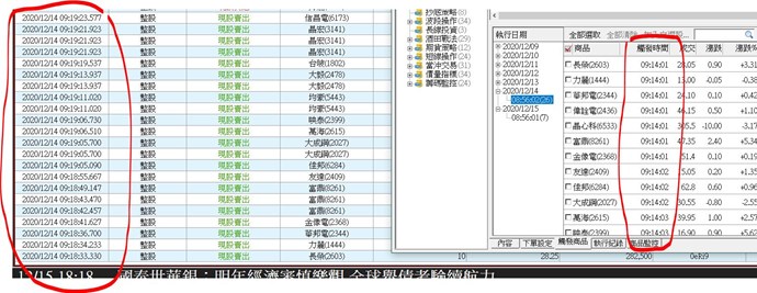 下圖是進場時間,左邊是"查詢成交時間"跟"查詢委託時間" ,右邊是策略雷達的"觸發時間",