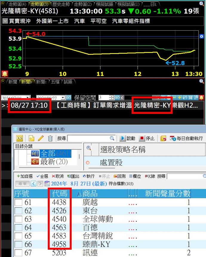 選股中心篩選8/27有新聞的股票 卻選不到4581