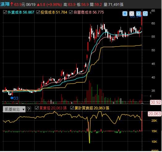 不知道樓主是不是跟我一樣的問題以6/19的漢翔來看籌碼分析也是錯的, 凱北當日買入2萬張, 結果累積買賣超的黃線還往下彎