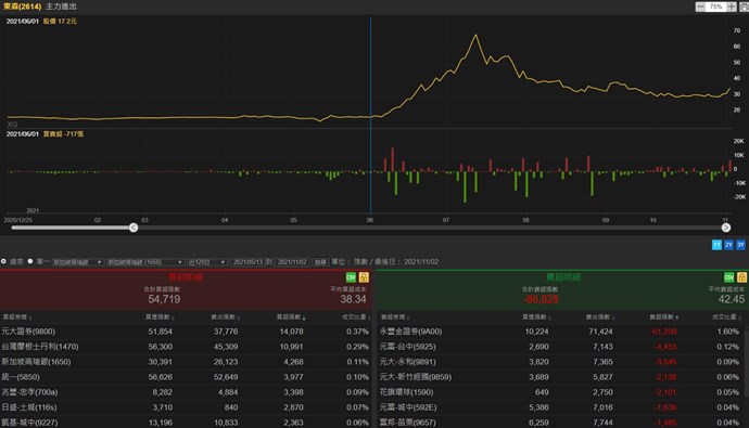 若我點選其中一個券商, 它就會跳到單一券商近日進出明細, 但, 我可以圖中看出淨多空就好, 而我想要看各分點的, 此時, 必需點"總表", 才能再點其它分點!