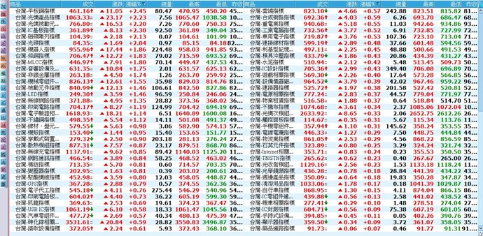 您好,若使用企業版,可以參考「報價/台股報價/細產業指標/細產業指標行情」功能,再看是否符合您的需求。