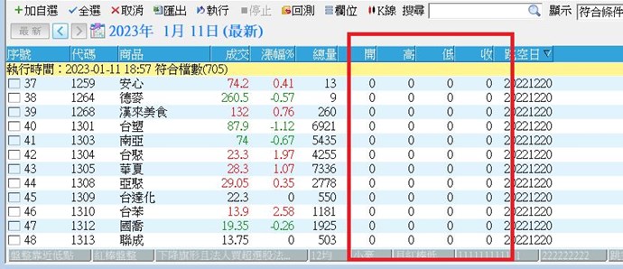 value7 = getfield("Close", "D"); //跳空當天開高低收