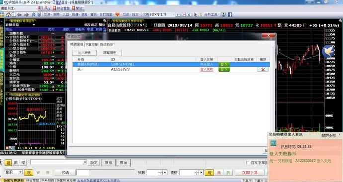 3. “登入失敗“的原因訊息截圖(您所附的登入失敗畫面,中間”帳號設定“介面中,去點擊統一的”登入失敗“,就會彈出登入失敗原因。)
