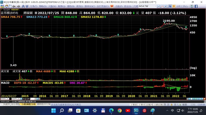 8454富邦媒2014/09/09周線圖最高價242最低價3.43,顯示如下圖