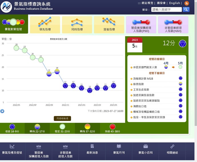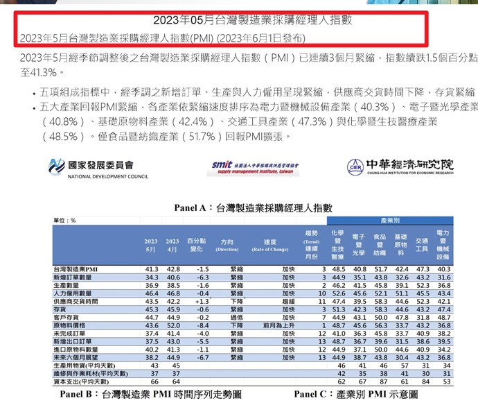 2023年5月台灣製造業採購經理人指數(PMI) (2023年6月1日發布)景氣對策訊號是昨天20230630 公布,XQ沒這麼快更新沒錯但是第一項是6/1公布,已經lag 兩個月囉(你們資料還在3/1號)