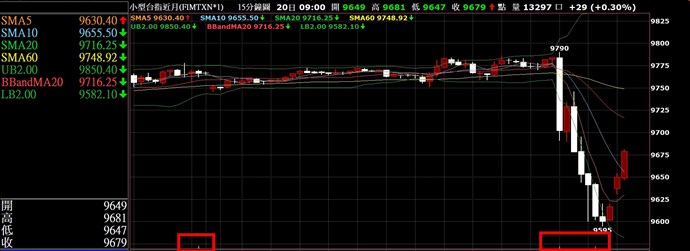 1. 如果畫面選擇 15 分鐘的資料頻率顯示經過「一段時間 (超過 3 分鐘或 5 分鐘以上,頻率較短的 K 線圖必須繪製新的 XS 指標)」,就會發生資料點重複顯示的錯誤。