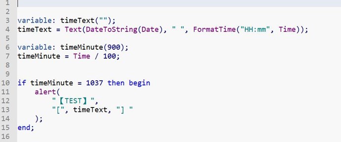 執行代碼為:執行到 10:37 的 分K 時,發出 Alert 訊息,列印出該 分K 所屬的 日期和時間