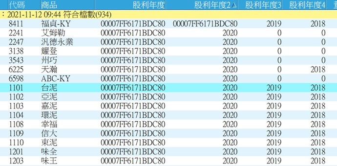 2. 圖片中的0,是否代表該股票尚未上市或是沒有配發股利,所以為0?