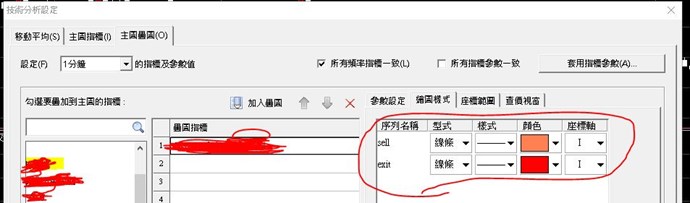 導入自定的指標時,可以透過介面設定我們想要的 繪圖樣式,如下: