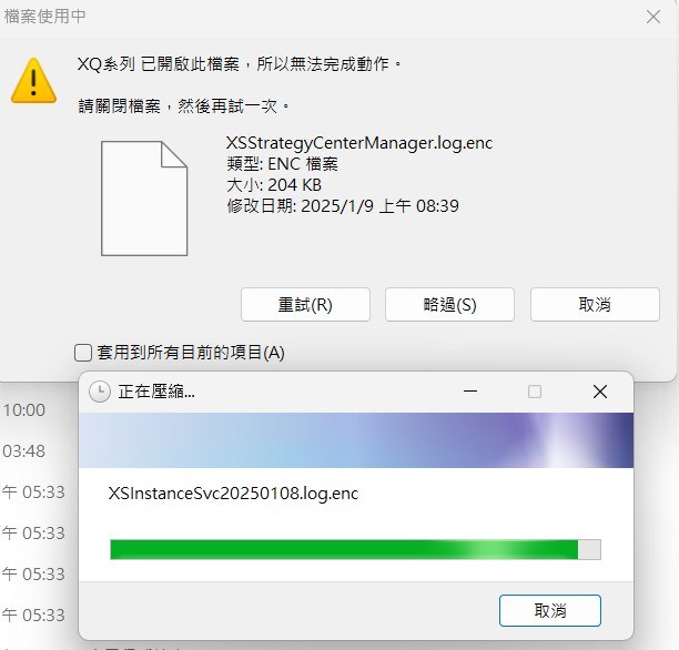 要壓縮LOG時,遇到錯誤,重試後才可以