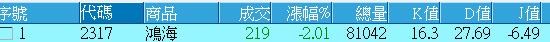 使用相同參數(9,3,3), 以2026/12/21 鴻海為例,計算KD值