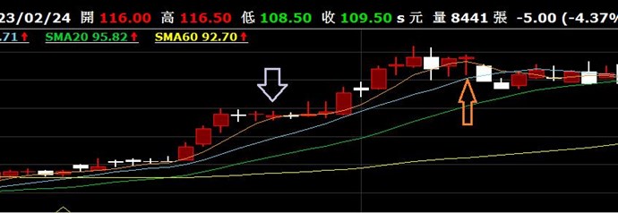 紫色箭頭日期(2022/11/24)要抓到此股,但失敗。