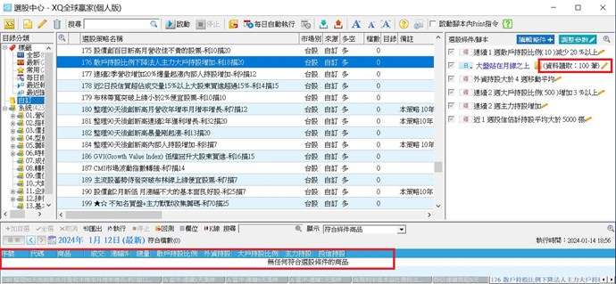 我的一個策略 在 腳本 "大盤站在月線之上" 讀取資料設定為10筆時 出了一檔股票 可是把 讀取資料設定改成 100筆,這檔股票就沒有篩選出來,請問這是什麼原因?我的設定應該是10筆還是100筆還是其它數值?