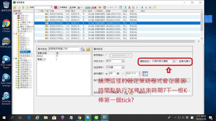 Q:所以訊號出現在當天最後1根K棒時,要等隔天第1根K棒的第一筆Tick才會執行?