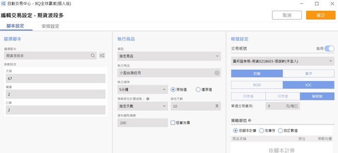 另外自動交易功能目前有開放下選擇權價差單,可以參考下圖設定。