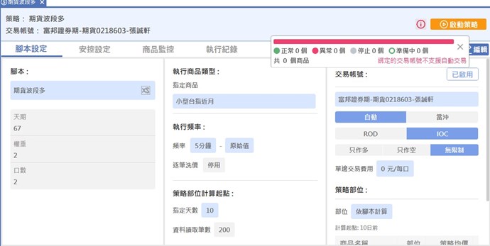 請問為什麼此期貨帳號已經有登錄了,卻顯示未登入?(策略雷達可正常運作)